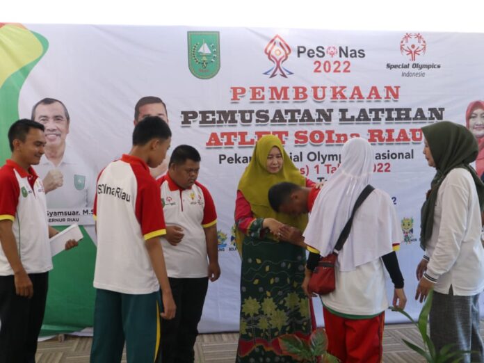 PEKANBARU, SIJORITODAY.com- Ketua Special Olympic Indonesia (SOIna) Kabupaten Indragiri Hilir (Inhil) Zulaikhan bertemu dan memberikan uang saku kepada empat atlet disabilitas asal Inhil yang akan bertanding di Pesonas 1.