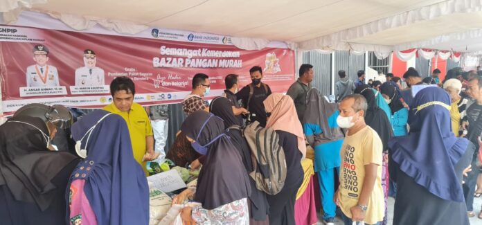 TANJUNGPINANG,SIJORITODAY.com – Dengan semangat bulan kemerdekaan, Pemprov Kepri melalui Dinas Ketahanan Pangan, Pertanian, dan Kesehatan Hewan (KP2KH) menggelar Bazar Pangan Murah di Halaman Parkir Foodcourt Bintan Centre, Tanjungpinang, Sabtu (20/8/2022).