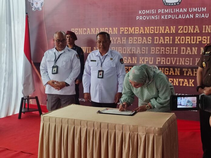 TANJUNGPINANG,SIJORITODAY.com – Komisi Pemilihan Umum (KPU) Kepulauan Riau canangkan pembangunan zona integritas menuju wilayah bebas korupsi (WBK) dan wilayah birokrasi bersih melayani (WBBM), Senin (27/2/2023).