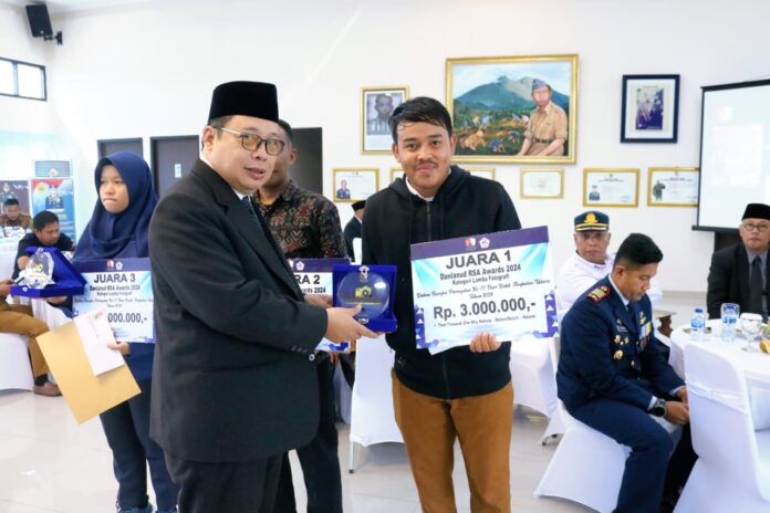 Danlanud RSA Natuna menyerahkan langsung hadiah kepada pemenang lomba, Danlanud RSA Awards 2024, disertai Bupati Natuna, dan Ketua DPRD Kabupaten Natuna.