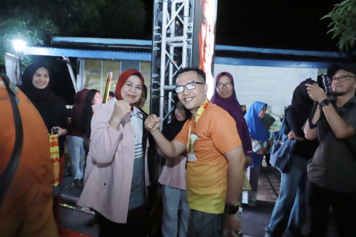 Sekretaris Komisi II DPRD Kepri, Wahyu Wahyudin dan Wakil Ketua I, Dewi Kumalasari saat mengikuti Penyengat Night Run 2025 di Pulau Penyengat, Sabtu (13/9/2025) malam. F:Sijoritoday.com/Sunar