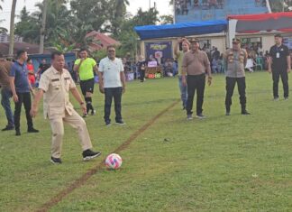 KUANSING,SIJORITODAY.com - Bupati Kuantan Singingi, Suhardiman Amby didampingi Ketua DPRD, Jufrizal membuka turnamen sepakbola PSKS Koto Simandolak Kecamatan Benai di Lapangan PESSI Desa Simandolak, Kamis (16/10/2025).